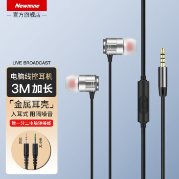 紐曼JK12電腦耳機(jī)入耳式有線3米加長線帶麥臺式機(jī)雙孔插頭帶