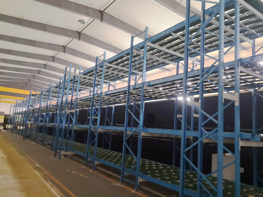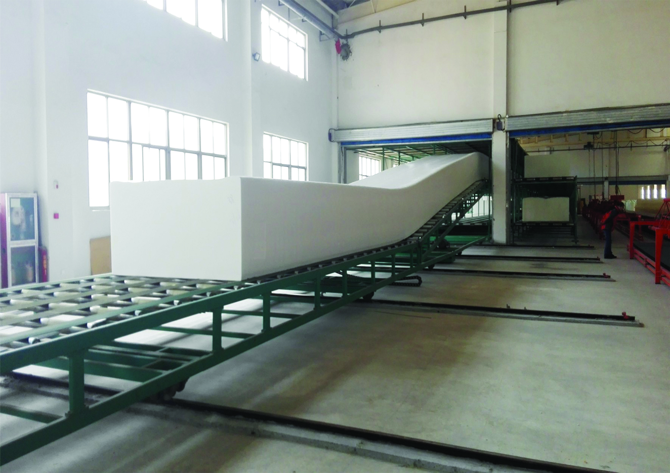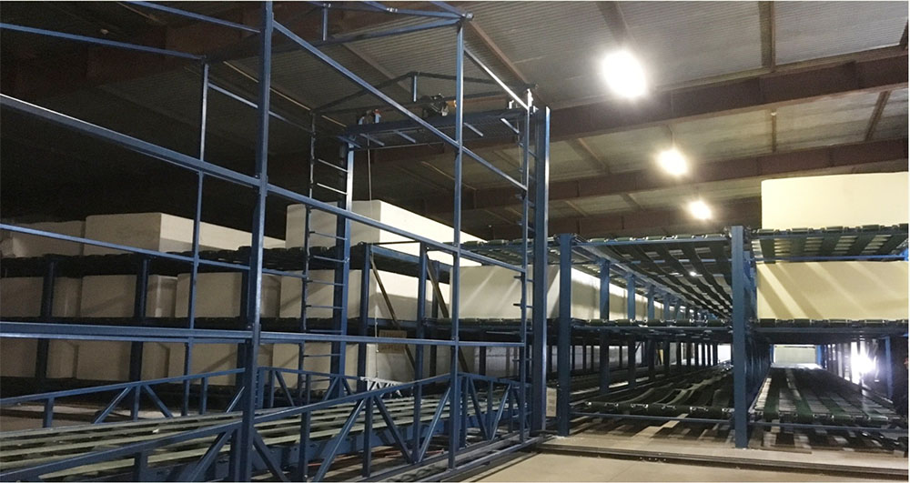 海綿立體倉(cāng)庫(kù)用于儲(chǔ)存剛發(fā)泡出來未完全熟化的海綿,可以儲(chǔ)存長(zhǎng)條海綿及短泡,可以配套移動(dòng)輸送線或者移動(dòng)倉(cāng)庫(kù),以便可以讓海綿進(jìn)入倉(cāng)庫(kù)的每一個(gè)倉(cāng)位,倉(cāng)庫(kù)每個(gè)輸送線可以獨(dú)立與前輸送線同步,通過PLC與人機(jī)界面,可以實(shí)現(xiàn)海綿自動(dòng)進(jìn)入指定倉(cāng)庫(kù)和從指定倉(cāng)庫(kù)輸送出海綿,使用此系統(tǒng)可以加快海綿降溫,保證海綿的質(zhì)量,同時(shí)節(jié)省大量人力。